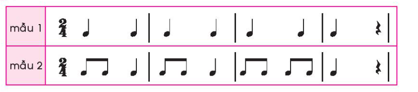 Thể hiện các mẫu tiết tấu trên bằng các nhạc cụ gõ mà em thích.