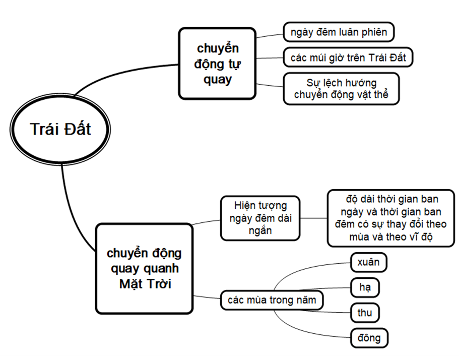 Ví dụ sơ đồ tư duy về nội dung Chương 2. Trái Đất - Hành tinh của Hệ Mặt Trời: