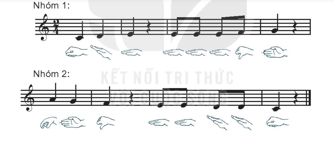 Đọc nhạc theo ký hiệu bàn tay hoặc cùng bạn đọc nối tiếp các câu trong bài đọc nhạc số 4