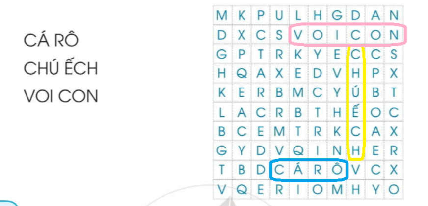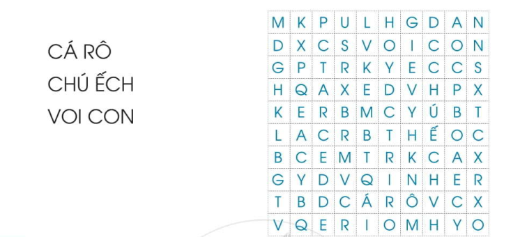 Tìm và tô màu những từ dưới đây ẩn trong ô chữ