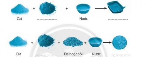 Điền từ/cụm từ thích hợp vào chỗ …. Dưới các hình ảnh pha trộn vật liệu xây dựng sau đây