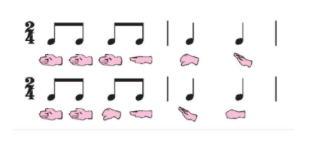 Đọc mẫu tiết tấu kết hợp đọc nốt nhạc theo ký hiệu bàn tay