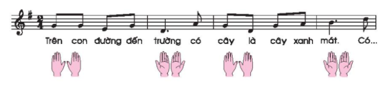 Em hãy hát bài Trên con đường đến trường kết hợp với động tác tay theo nhịp với mẫu sau: