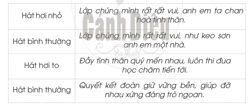 Hát những câu sau trong bài Lớp chúng ta đoàn kết với cường độ âm thanh to - nhỏ khác nhau