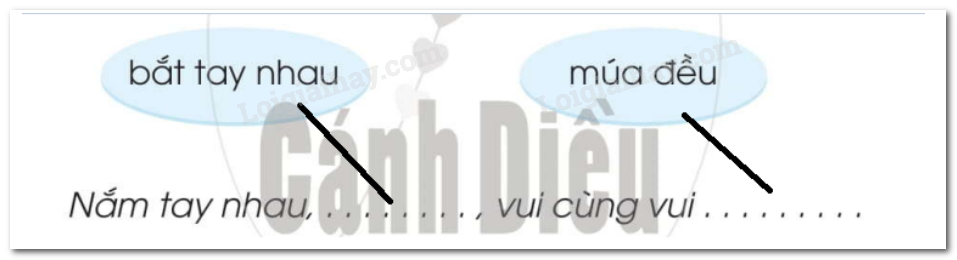 Nối những từ dưới đây vào dấu …. cho phù hợp với lời bài hát Múa vui, rồi hát câu hát này