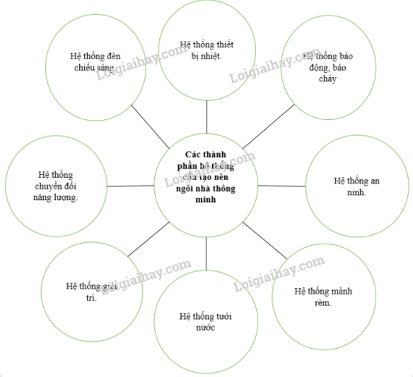 Hoàn thành sơ đồ sau để nêu rõ các thành phần hệ thống cấu tạo nên ngôi nhà thông minh.