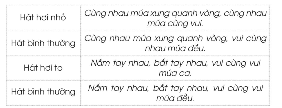 Hát những câu sau trong bài Múa vui với cường độ âm thanh to - nhỏ khác nhau