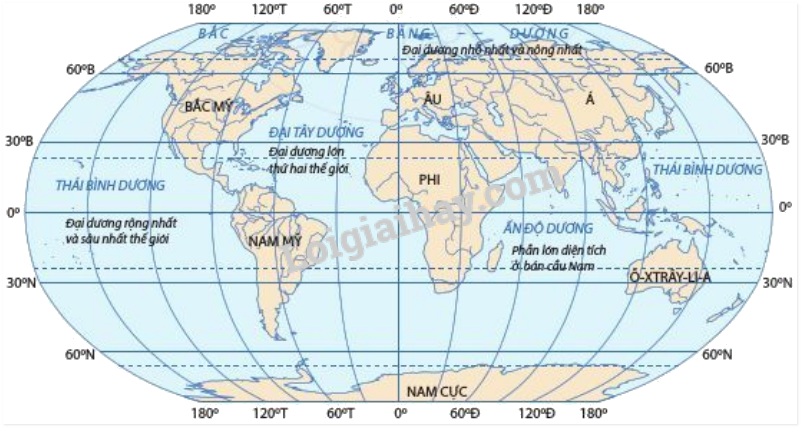 Hình 19.1. Lược đồ các đại dương thế giới
