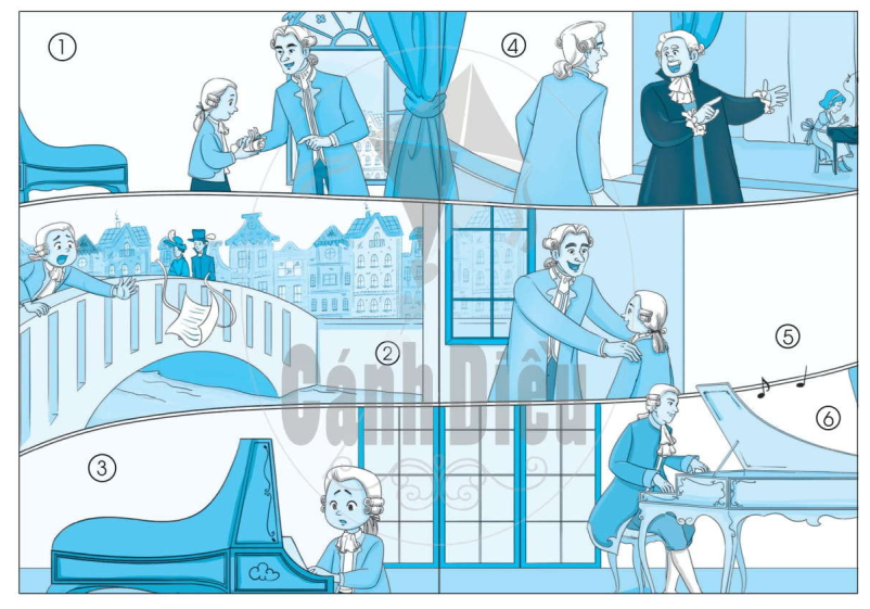 Tự chọn và kể một phần câu chuyện Thần đồng âm nhạc theo hình ảnh minh họa dưới đây