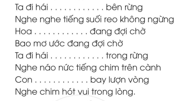 Viết lời ca vào chỗ … cho phù hợp với bài Hái hoa bên rừng