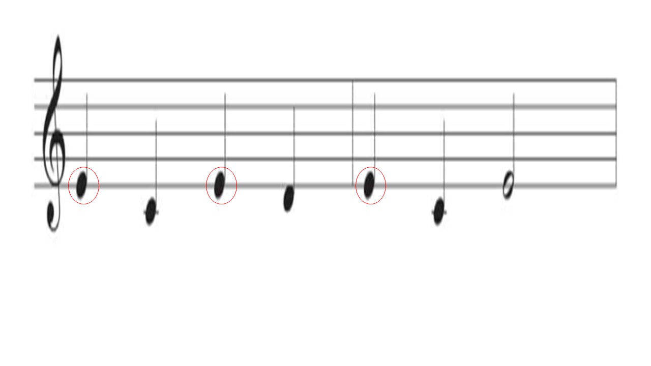 Khoanh tròn những nốt Mi trong bản nhạc dưới đây