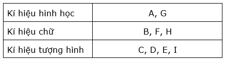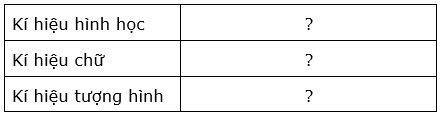 Hãy sắp xếp các kí hiệu trên vào bảng sao cho phù hợp với các dạng kí hiệu.
