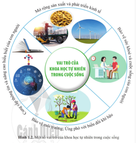 Hãy quan sát hình 1.2 và cho biết khoa học tự nhiên có vai trò như thế nào trong cuộc sống của con người. Cho ví dụ minh họa.