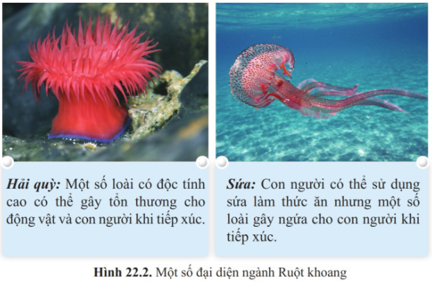 Quan sát hình 22.2 và mô tả hình dạng của hải quỳ, sứa.