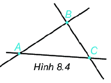 Trong hình 8.4 có 3 đường thẳng, đó là những đường thẳng: AB ( hay BA) , AC ( hay CA) , BC ( hay CB).