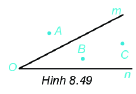 Quan sát hình 8.49 và kể tên các điểm nằm trong góc mOn.