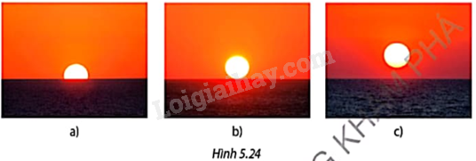 Vị trí của mặt trời so với đường chân trời có gì khác biệt trong các Hình 5.24a, b và c?