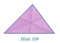 Bạn Ngân gấp một miếng bìa hình tam giác để các nếp gấp tạo thành ba tia phân giác của các góc ở đỉnh của tam giác đó (Hình 109).