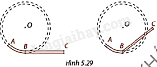 Trong trường hợp nào ở Hình 5.29, đoàn tàu có thể di chuyển từ cung đường ray AB sang đường ray thẳng BC mà không trật bánh ray? Khi đó đường thẳng BC và đường tròn (O) có vị trí tương đối như thế nào?