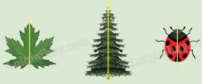 + Trong các hình đã cho, cả ba hình đều có trục đối xứng là đường thẳng màu vàng ở mỗi hình.