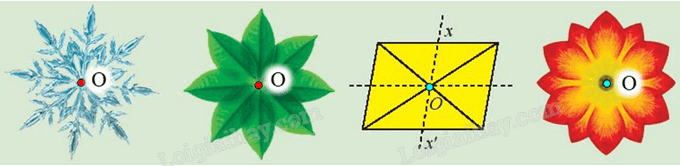 Cả 4 hình đều có tâm đối xứng là điểm O như hình vẽ dưới đây: