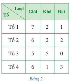 Xếp loại thi đua bốn tổ lao động của một đội sản xuất được thống kê ở Bảng 2 (đơn vị: người). Bằng cách phân tích và xử lý dữ liệu thống kê, hãy cho biết: