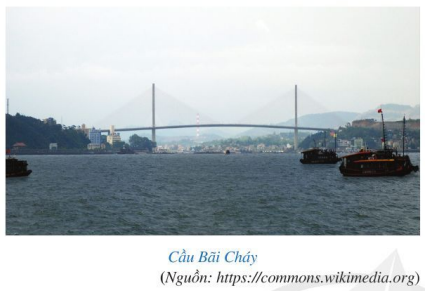Cầu Bãi Cháy nối Hòn Gai và Bãi Cháy (Quảng Ninh). Trụ cầu và dây cáp của cầu gợi nên hình ảnh đường vuông góc và đường xiên.