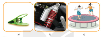 Các vật trong hình trên: a) kẹp quần áo; b) giảm sóc xe máy; c) bạt nhún, đều có cấu tạo và hoạt động dựa trên sự biến dạng của lò xo.