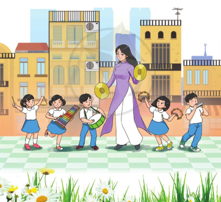 Khám phá bức tranh và kể tên những nhạc cụ mà em biết