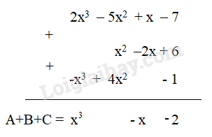 Đặt tính cộng để tìm tổng của ba đa thức sau: