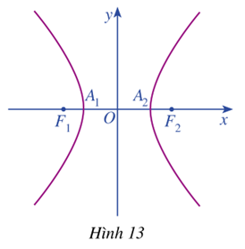Trong mặt phẳng tọa độ \(Oxy\), ta xét hypebol (H) với phương trình chính tắc \(\frac{{{x^2}}}{{{a^2}}} - \frac{{{y^2}}}{{{b^2}}} = 1\) trong đó \(a > 0,b > 0\) (Hình 13)