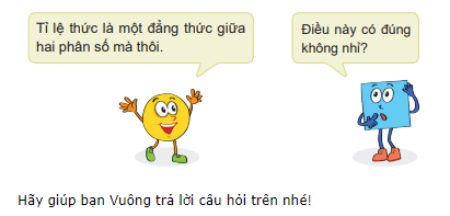 Bạn Tròn nói chưa đúng vì tỉ lệ thức là đẳng thức của hai tỉ số. Tỉ số có thể không phải là phân số