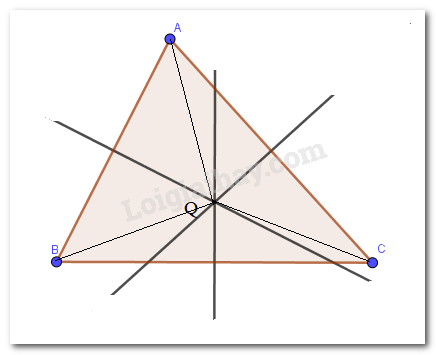 \( \Rightarrow O\) nằm trên đường trung trực của đoạn thẳng AB (tính chất đường trung trực của đoạn thẳng)