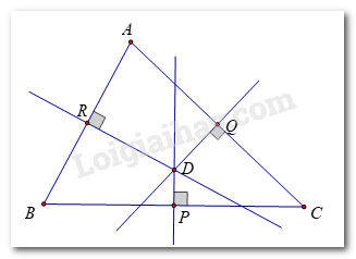 Ba đường trung trực DP, DQ, DR cùng cắt nhau tại điểm D.
