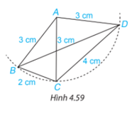 Hãy nêu tên tất cả các tam giác cân trong Hình 4.59. Với mỗi tam cân đó, hãy nêu tên cạnh bên, cạnh đáy, góc ở đỉnh, góc ở đáy của chúng.