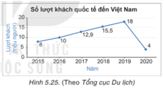 Biểu đồ Hình 5.25 cho biết số lượt khách quốc tế đến Việt Nam trong những năm gần đây.