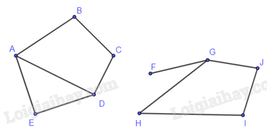b) Dãy các cạnh kế tiếp nhau AB, BC, CD, DE có đặc điểm gì.