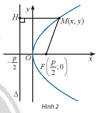 Cho điểm \(M(x;y)\) trên parabol (P) \({y^2} = 2px\) (Hình 2). Tính khoảng cách từ điểm M đến tiêu điểm \(F\) của (P).