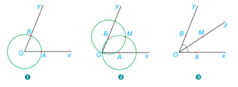 Người ta dùng compa và thước thẳng để vẽ tia phân giác của góc xOy