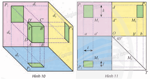 Ta thấy nếu chỉ dùng một hình chiếu vuông góc của hình hộp chữ nhật ℋ trên một trong ba mặt phẳng đôi một vuông góc (P1), (P2), (P3) trong Hình 7 thì hình chiếu đó chỉ thể hiện được một mặt của vật thật dẫn đến chế tạo không chính xác.