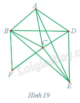 Đồ thị G ở Hình 19 gồm 6 đỉnh, trong đó các đỉnh A, D, E có bậc 4, các đỉnh B, C có bậc 5 và đỉnh F có bậc 2 nên tổng bậc của hai đỉnh không kề nhau bất kì đều không nhỏ hơn 6. Do đó, theo định lí Ore, đồ thị G có ít nhất một chu trình Hamilton.