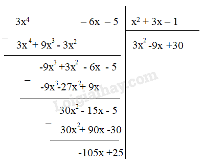 Vậy A = (x2 + 3x – 1) . (3x2 – 9x + 30) -105x + 25
