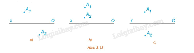 a) Điểm A1 và điểm A2 nằm về hai phía khác nhau đối với đường thẳng Ox. Đường thẳng A1A2 có vuông góc với Ox.