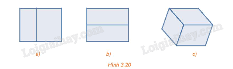 Trong Hình 3.20a và 3.20b chỉ thấy được hai mặt của hình hộp chữ nhật nên không là hình chiếu trục đo của hình hộp chữ nhật. Trong Hình 3.20c có thể thấy được cả ba mặt của hình hộp chữ nhật nên hình này là hình chiếu trục đo của hình hộp chữ nhật.