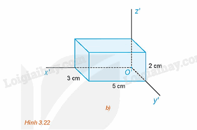 Hình chiếu trục đo của một hình hộp chữ nhật được cho như trong Hình 3.22b. Biết các hệ số biến dạng là p = 1, q = r = 0,5. Tính kích thước thực tế của hình hộp chữ nhật đó.