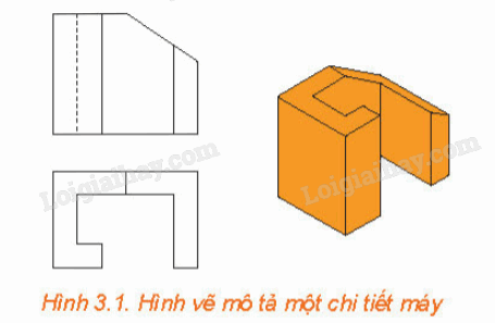 Hình màu cam trong Hình 3.1 là hình chiếu trục đo vuông góc đều của vật thể.