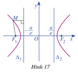 Xét đường thẳng \({\Delta _1}:x = - \frac{a}{e}\) với mỗi điểm \(M\left( {{x_0};{y_0}} \right) \in \left( H \right)\) (Hình 17), tính: