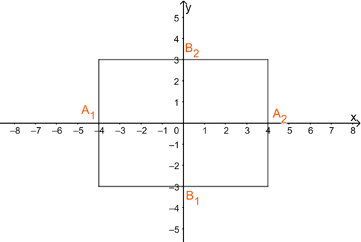 Bước 1: Vẽ hình chữ nhật cơ sở có bốn cạnh thuộc 4 đường thẳng \(x = - 4,x = 4,y = 3,y = - 3\)