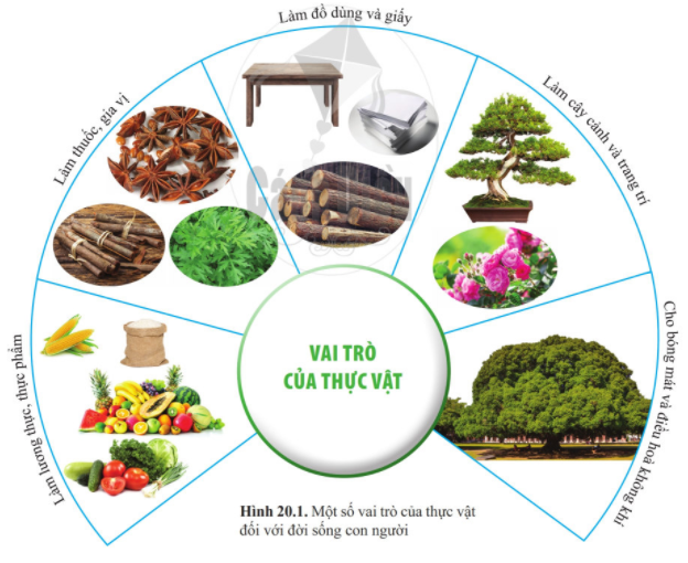 Hãy quan sát hình 20.1 và cho biết vai trò của thực vật đối với đời sống con người.