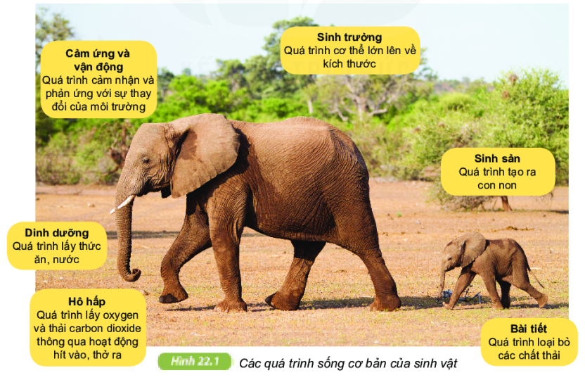 Quan sát hình 22.1 và nêu các quá trình sống cơ bản của cơ thể?